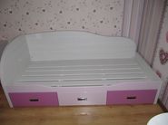 Клиенту требовалось оборудовать детскую комнату для двух девочек 6 и 8 лет столом, шкафом и кроватью и с максимальным количеством ящиков для хранения. Сложность проекта в том, что достаточно мало места для реализации всего задуманного.